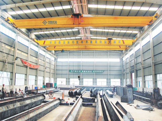 新型橋式起重機是我公司在引進和消化國外先進技術的基礎上,以模塊化設計理論為指導,以現代計算機技術為手段,引入優化設計及可靠性設計方法,采用進口配置、新材料、新工藝完成的具有輕量化、通用化、節能環保、高技術含量的新型起重機。本起重機的設計、制造及檢驗均執行國家有關標準,等效采用部分FEM、DIN、IEC等國外標準,與原有通用QD型橋吊產品相比,自重減輕約15~30%,輪壓減小約10~35%,可以降低